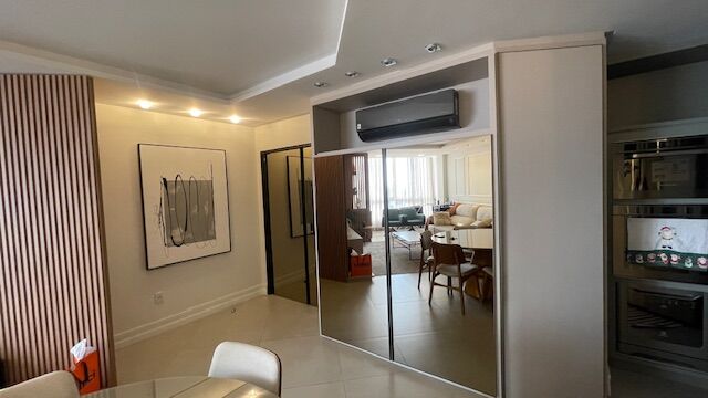 Espaço gourmet com churrasqueira, piso laminado e porcelanato, split na suíte e na sala de estar, fechadura digital, vista panorâmica, acabamento impecável.