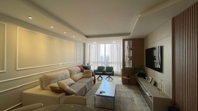 1 Suíte e 2 demi-suítes, sala de jantar, sala de TV, cozinha com móveis planejados, área de serviço com armários, lavabo.