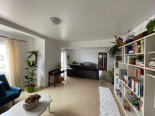 Ampla sala de estar, integrada com a sala de jantar (sala de jantar com sacada).